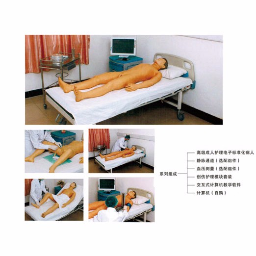 電子標(biāo)準(zhǔn)化病人具有高度靈活的關(guān)節(jié),頭部(前傾、后仰、開舉下頜);頸部(旋前、旋后、前屈、后伸);軀干(旋前、旋后、前屈、后伸);四肢(旋前、旋后、展收、屈伸、旋內(nèi)、旋外;髖關(guān)節(jié)的內(nèi)收、外展;腕關(guān)節(jié)和踝關(guān)節(jié)的屈伸、展收),可實現(xiàn)各種體位的擺放,可完成的操作技能多達160余項。