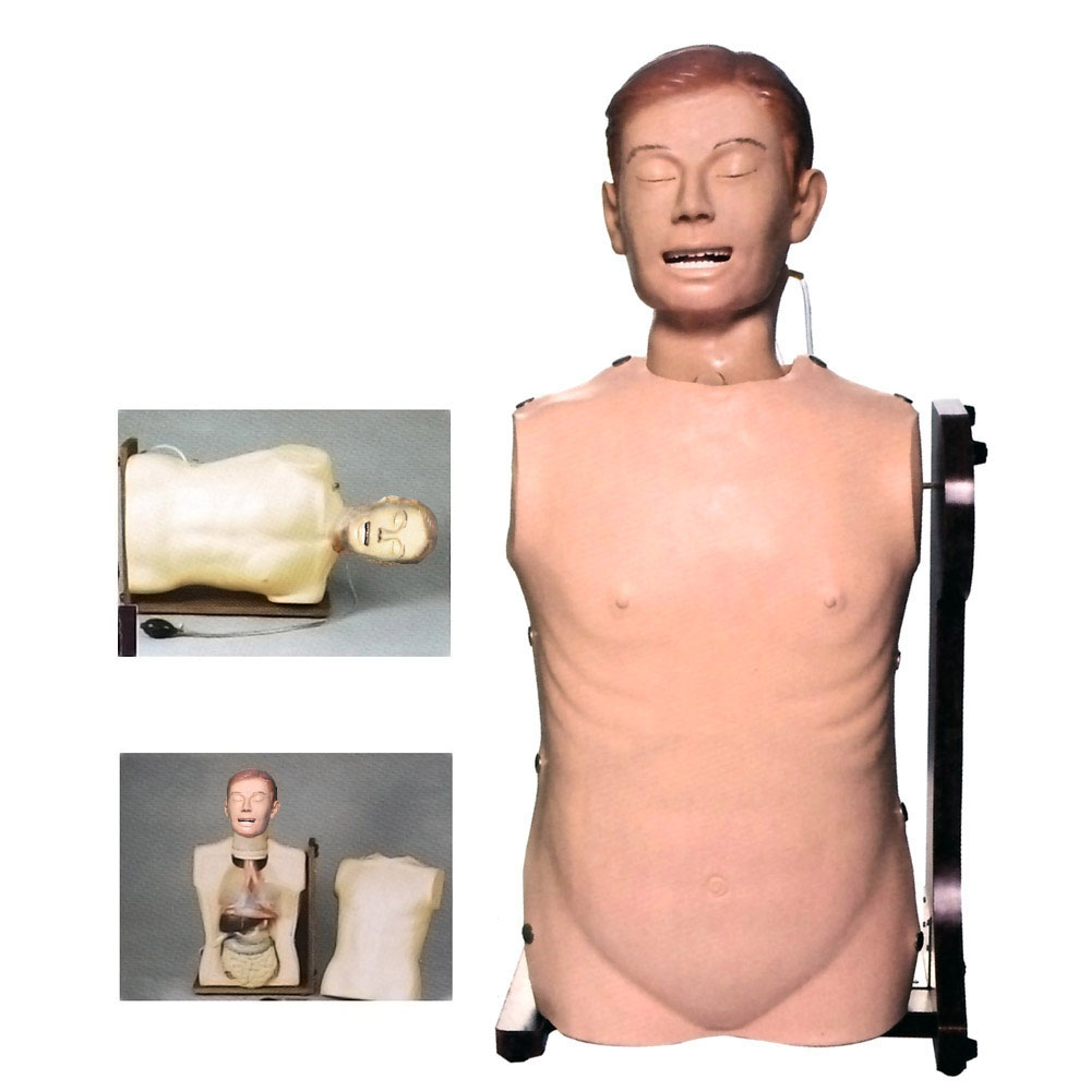該產(chǎn)品模擬一成人男性上半身結(jié)構(gòu),解剖結(jié)構(gòu)包括鼻腔、口腔、牙、舌、懸雍垂、會壓、聲帶、氣管、支氣管、雙肺、食管、胃、肝臟、小腸采用高強度透明材料制成,手感真實。