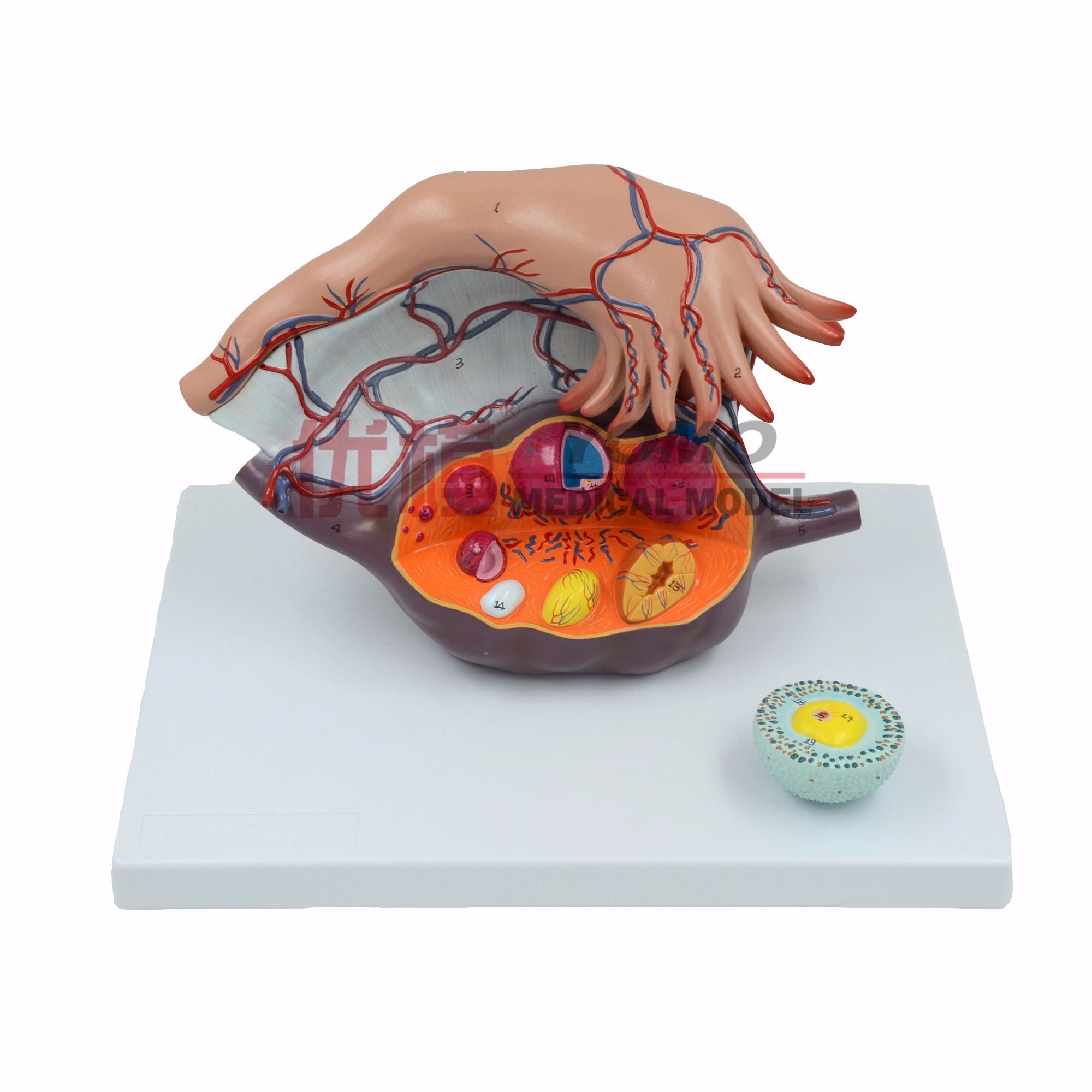 此卵巢模型為正常卵巢的5倍大,2部件。展示了人類卵巢和輸卵管傘的解剖結構。