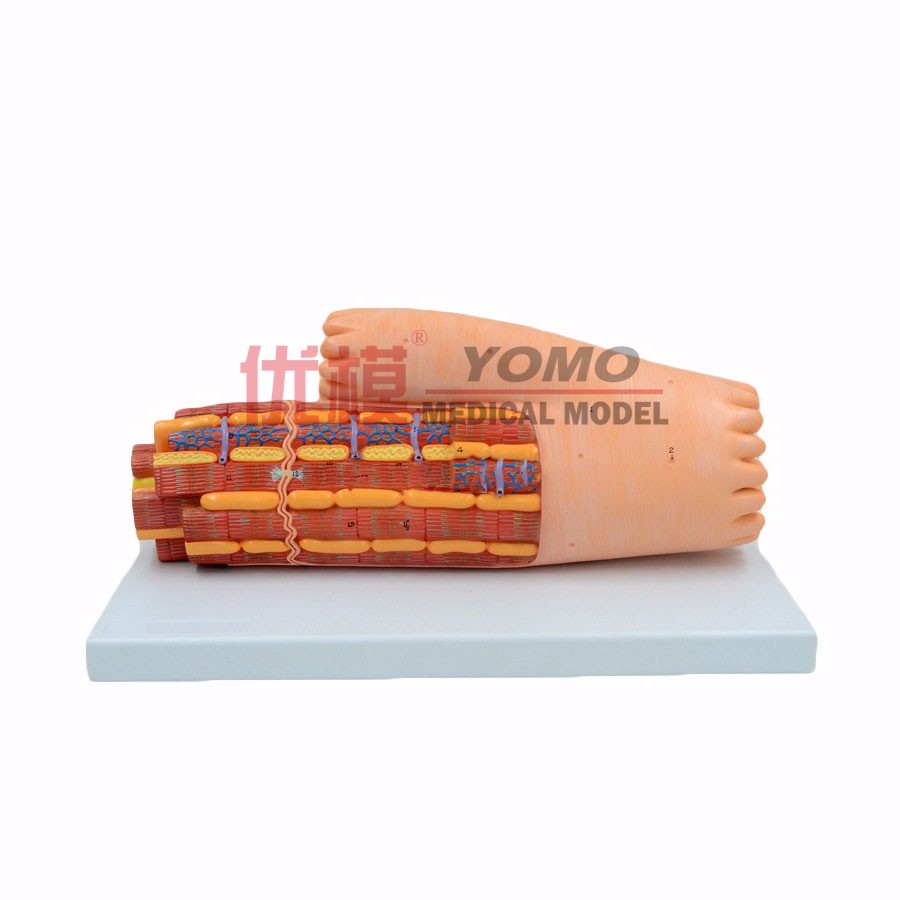 心肌(cardiac muscle) 由心肌細(xì)胞構(gòu)成的一種肌肉組織。心肌細(xì)胞為短柱狀,一般只有一個(gè)細(xì)胞核,而骨骼肌纖維是多核細(xì)胞。在電子顯微鏡下觀察,也可看到心肌細(xì)胞的肌原纖維、橫小管、肌質(zhì)網(wǎng)、線粒體、糖原、脂肪等超微結(jié)構(gòu)。此款模型正好準(zhǔn)確展示了這些細(xì)節(jié),方便教學(xué)研究使用。