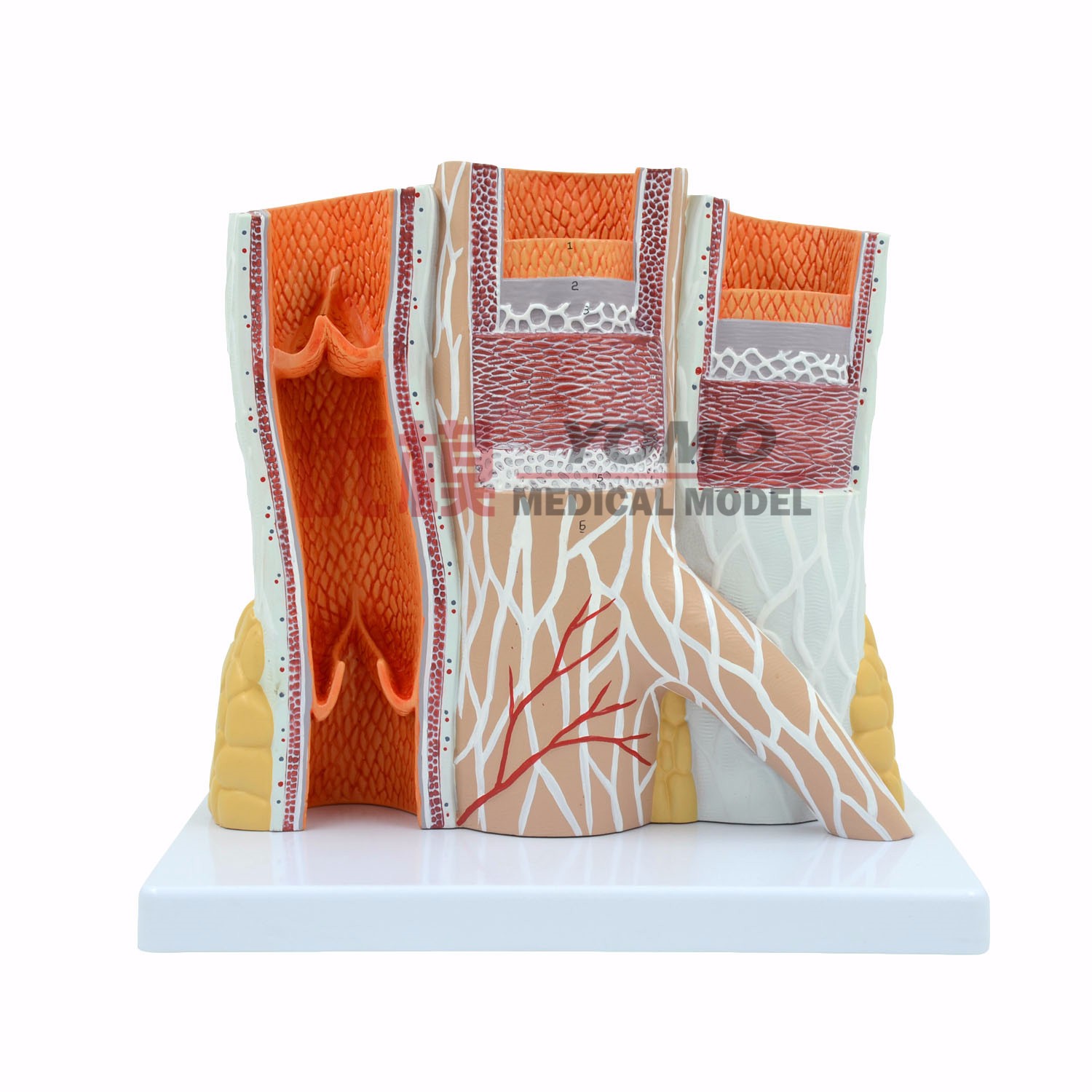 產(chǎn)品介紹:這款模型表現(xiàn)的是一段小臂上中強(qiáng)度的肌肉動(dòng)脈和所鄰兩段靜脈,以及周圍的脂肪組織和肌肉,14倍放大。它解釋了動(dòng)脈和靜脈之間的解剖關(guān)系,以及靜脈膜瓣基本的功能性技巧(“閥門作用”和“肌肉泵”)。 左邊靜脈和中間動(dòng)脈在上前部切開(kāi)展示,以便橫切、縱切和整體上對(duì)壁組織不同層次的辨別。 右邊靜脈前部完全打開(kāi),展示靜脈入血口和兩個(gè)靜脈膜瓣,即由一對(duì)內(nèi)膜組成的垂瓣膜。模型的背面為凸起的兩個(gè)靜脈,