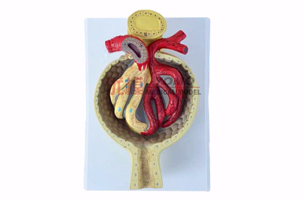 此模型為放大700倍的腎小球模型。腎小球?yàn)檠哼^濾器,腎小球毛細(xì)血管壁構(gòu)成過濾膜。