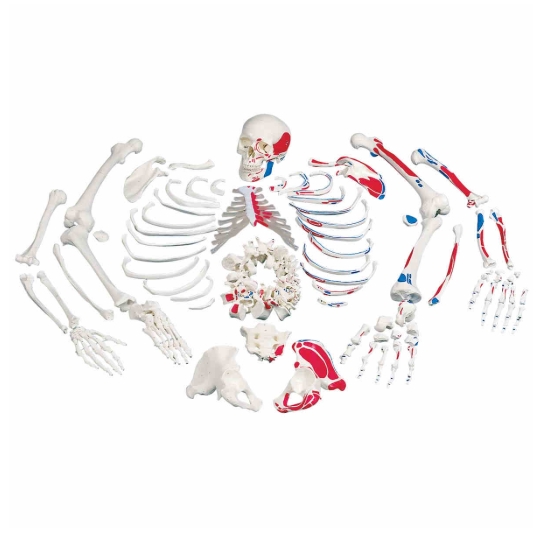 真人大小的脫節(jié)成人骨骼包括 3 部分頭骨、右手和右腳。
