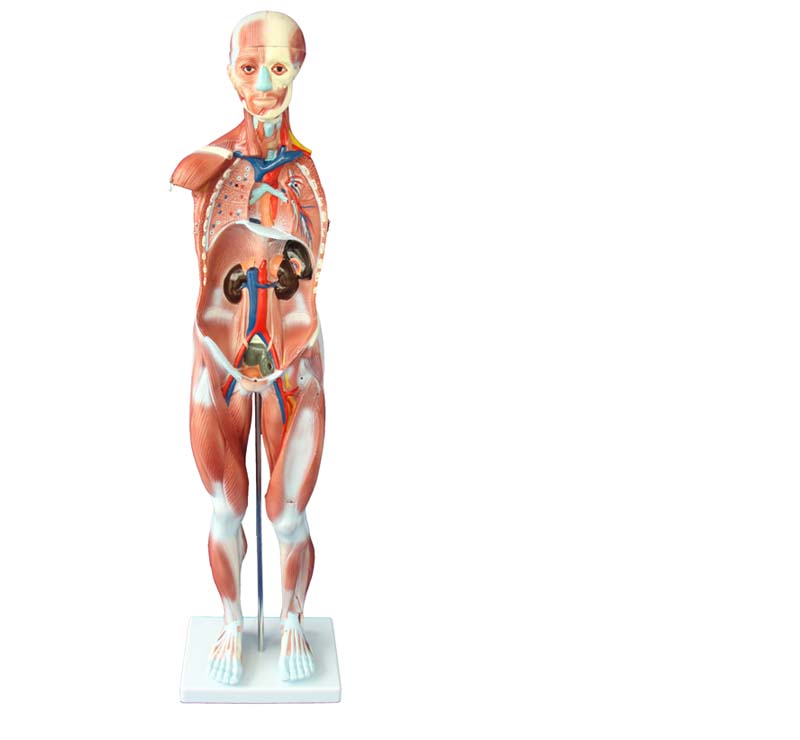 這個(gè)人體肌肉模型包括27個(gè)可解剖的部分:身體、切割顱骨、大腦(2部分)、胸腹壁、右臂、左臂(5部分)、腿(9部分)、肺(2 份)、心臟(2 份)、肝、胃和腸。