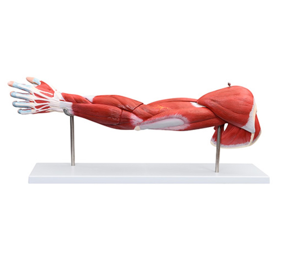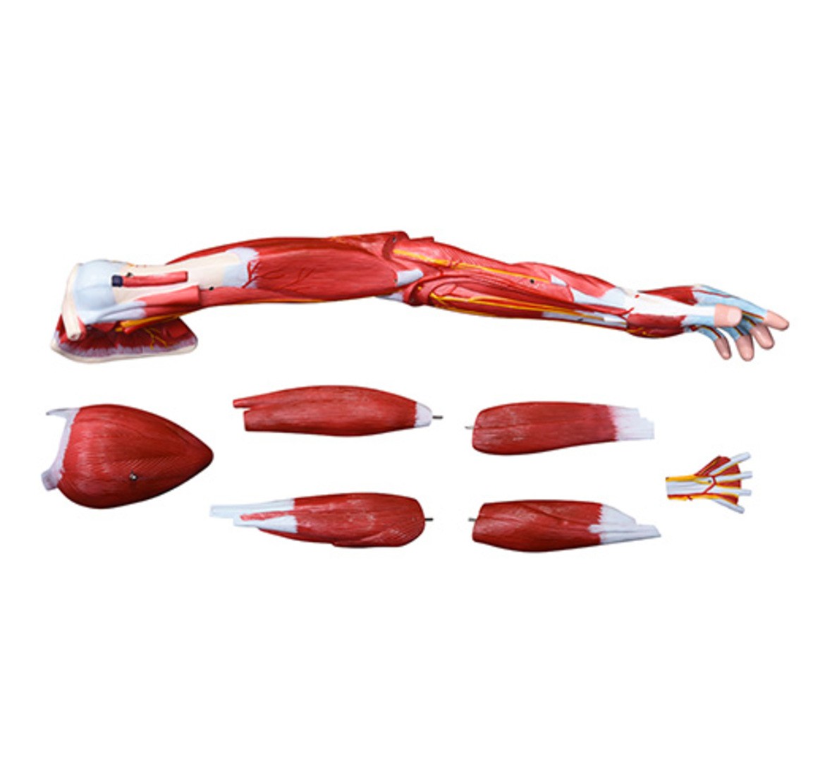 該模型可分為 7 個部分,以更詳細地顯示手臂的詳細解剖結(jié)構(gòu),包括淺層和深層肌肉、血管結(jié)構(gòu)、神經(jīng)和韌帶。手和肩膀得到了很好的表現(xiàn)。