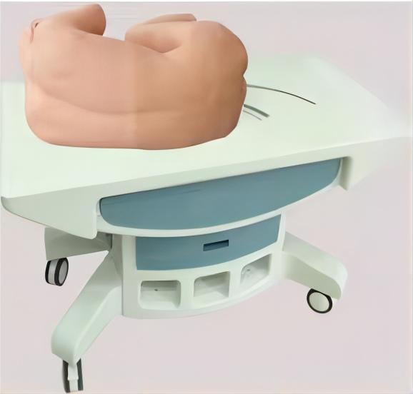 腰椎穿刺仿真標(biāo)準(zhǔn)化病人用于醫(yī)學(xué)院校、醫(yī)院對醫(yī)學(xué)生及醫(yī)務(wù)人員進(jìn)行腰椎穿刺模擬訓(xùn)練及技能考核。仿真標(biāo)準(zhǔn)化病人取側(cè)臥位,背部與床面垂直,頭向前胸彎曲,雙膝向腹部屈曲,軀干呈弓狀。
