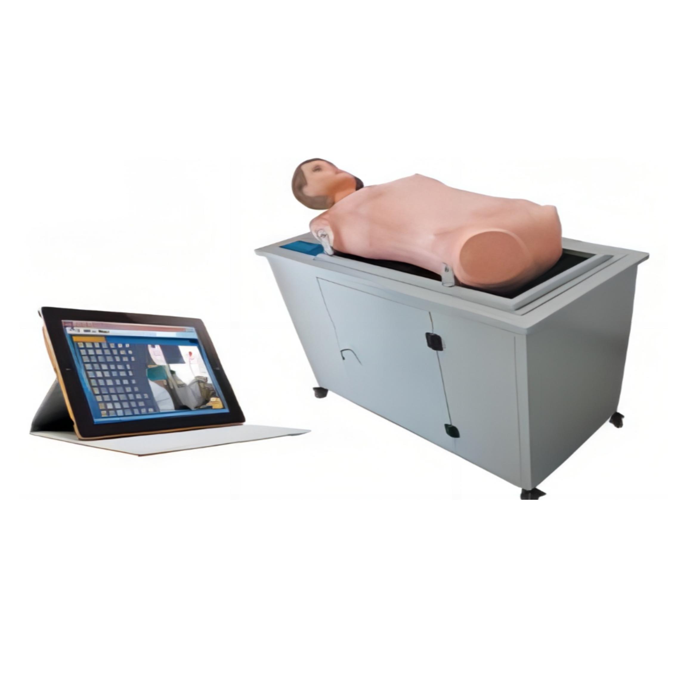 3、調(diào)整體位幅度大: 其特點(diǎn)是自動化程度更高,穿刺時(shí)模擬人體位的調(diào)整也完全自動化。當(dāng)進(jìn)行心包穿刺術(shù)或胸腔穿刺術(shù)時(shí),通過平板電腦即可使模擬人由平臥位自動變?yōu)榘肱P位或坐位。當(dāng)進(jìn)行腰椎穿刺術(shù)時(shí),可使平臥位自動變?yōu)閭?cè)臥位。實(shí)習(xí)完畢按動復(fù)位按鈕可使模擬人恢復(fù)平臥位。
