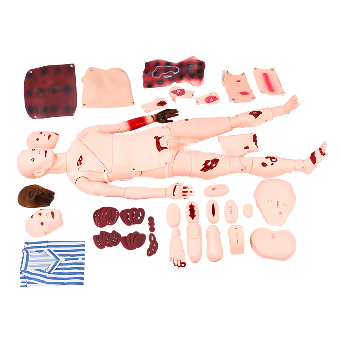 該產(chǎn)品新增創(chuàng)傷護理功能,極大增強現(xiàn)場處理及護理培訓(xùn)的真實感。一方面,,涵蓋從基礎(chǔ)的洗頭、洗臉,到各類插管、穿刺、注射、導(dǎo)尿等醫(yī)療操作,還有胸腔解剖展示及整理護理內(nèi)容;另一方面,新增大量創(chuàng)傷模塊,涉及面部、肢體多處燒傷、骨折、開放性傷口、槍彈傷、異物刺傷等多種創(chuàng)傷情形,各創(chuàng)傷部位附模擬出血點,全方位滿足復(fù)雜多樣的培訓(xùn)需求