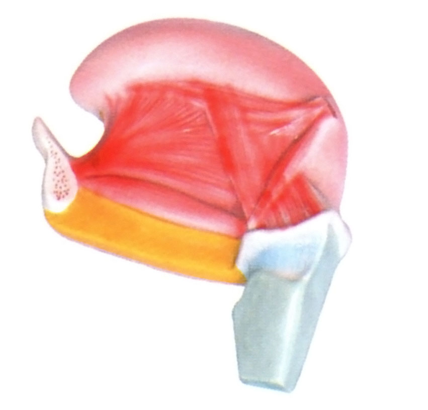 • 這是一對強有力的肌,起自下頜體后面的頦棘,肌纖維呈扇形向后上方分散,止于舌中線兩側(cè)。兩側(cè)頦舌肌同時收縮,