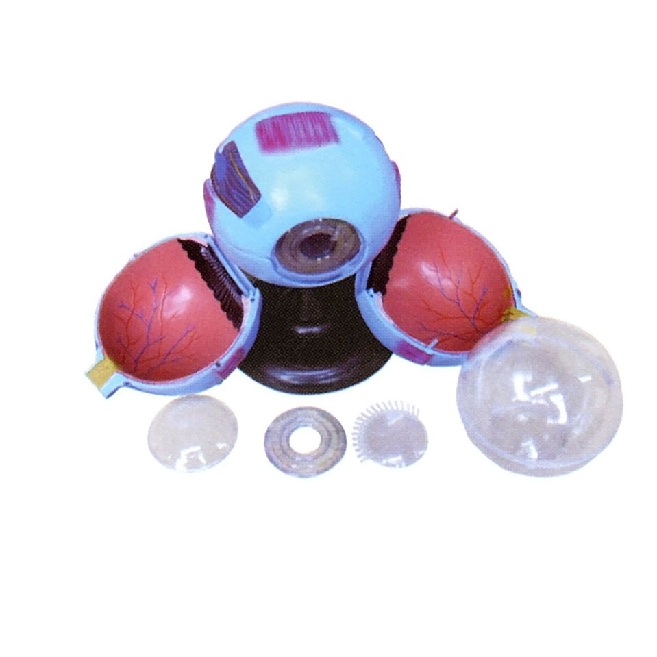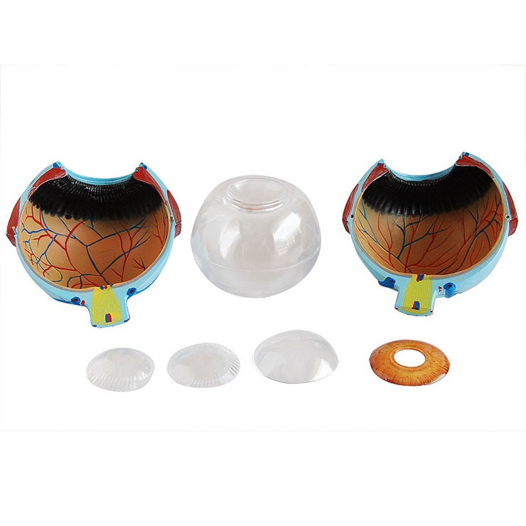 博友BOU-XC316眼球解剖放大模型將眼球縱切成兩部分,左半側(cè)的晶狀體與玻璃體為固定形狀,右半側(cè)的鞏膜可局部打開看到脈絡膜,眼球內(nèi)部顯示睫狀體、視網(wǎng)膜以及視網(wǎng)膜剖面(視網(wǎng)膜神經(jīng)層構(gòu)造)等結(jié)構(gòu)。
