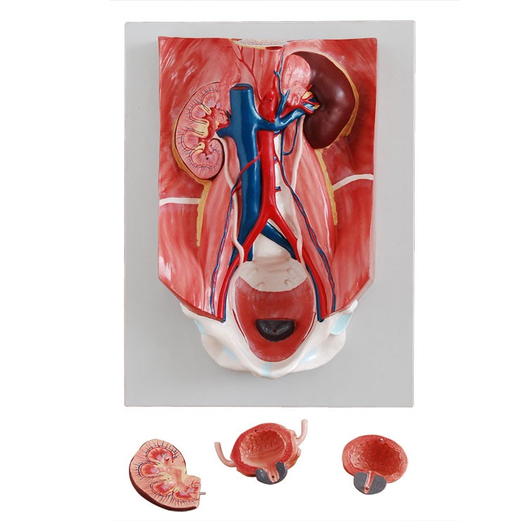 博友BOU-XC333泌尿系統(tǒng)模型(泌尿系統(tǒng)附腹后壁模型)由泌尿系統(tǒng)各器官連腹膜后腔、腎剖面、膀胱剖面等4個部件組成。顯示泌尿系統(tǒng)各器官、腎剖面的腎皮質、腎髓質以及膀胱等結構。