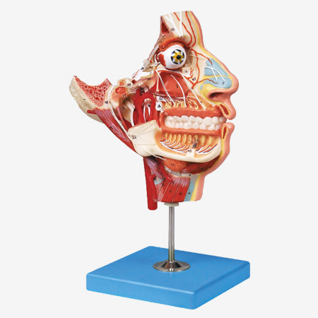 博友BM18109頭面部血管神經(jīng)模型顯示頭面部內(nèi)、外側(cè)面局部形態(tài)及其血管和神經(jīng)等結(jié)構(gòu),共有100個(gè)部位指示。