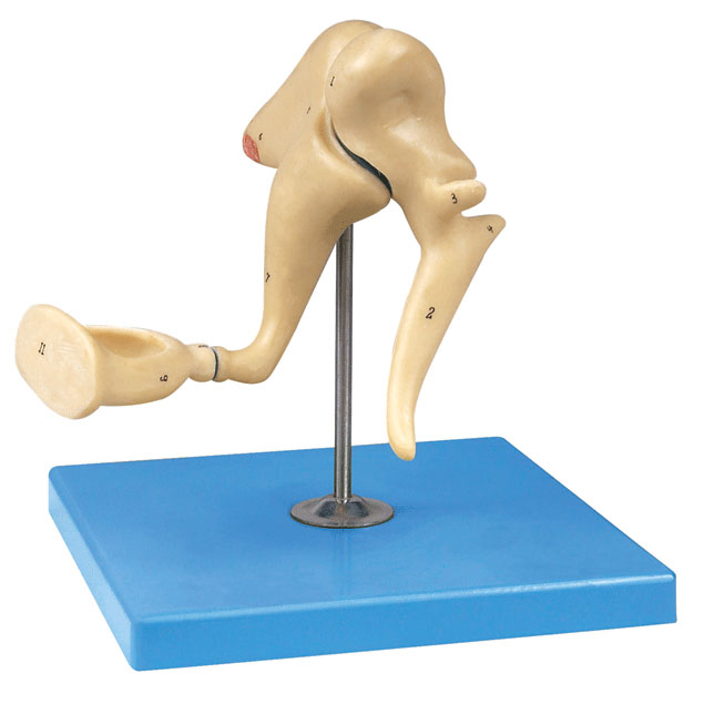 博友BM17203聽小骨放大模型該模型由錘骨、砧骨、鐙骨3個部件組成,并顯示聽小骨錘骨、砧骨、鐙骨的位置、形態(tài)和相互連接的關(guān)系,共有11個部位指示標(biāo)志。
