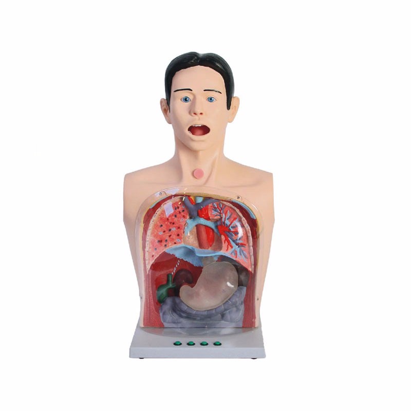 解剖結(jié)構(gòu)精確,包括牙、舌、懸雍垂、氣管、支氣管、左右肺臟、食管、胃、膈、膽囊、胰腺、脾、十二指腸、結(jié)腸等結(jié)構(gòu)。