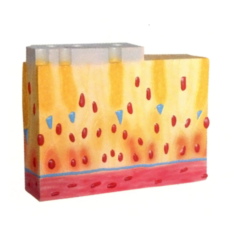 博友BM2034假復(fù)層纖毛柱狀上皮組織模型示各細(xì)胞頂面與側(cè)面的形態(tài)與連接關(guān)系。