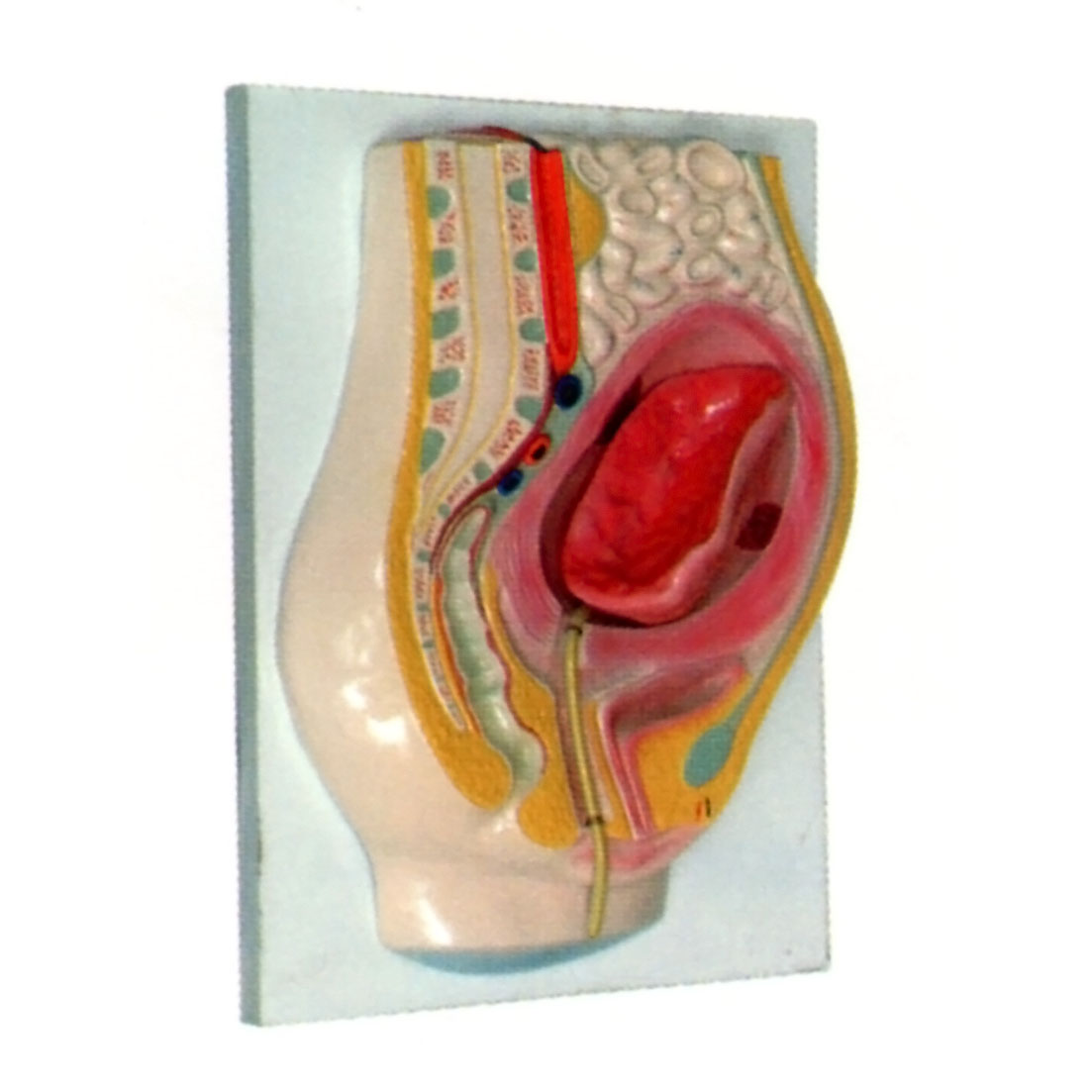 博友BM2048胎盤剝離模型作腹盆腔矢狀切面,示胎兒娩出后宮腔體積及胎盤附著面減小時(shí)的子宮、陰道、胎盤、臍帶的形態(tài)結(jié)構(gòu)。此時(shí)子宮底部略向上,并繼續(xù)收縮,靠近恥骨聯(lián)合的下腹隆起,露于外陰部的臍帶下垂(胎盤剝離象征)。隨后胎盤中央部先剝離,并先降入子宮腔下段。由于胎盤下降,使周圍胎膜與子宮壁分開,胎盤附著面上的流出物被包在胎盤與胎膜形成的囊內(nèi)。首先露出陰道外口的是光滑的胎兒面,隨之胎膜排出,產(chǎn)品示胎兒面與母體面的形態(tài)。