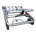 采用高質(zhì)鋁合金材料,配接件鋁合金壓鑄。采用海綿軟墊,使傷病員躺臥舒適。折腿機(jī)械結(jié)構(gòu),通過(guò)左右手柄控制。僅需一名救護(hù)人員把病人推上救護(hù)車。