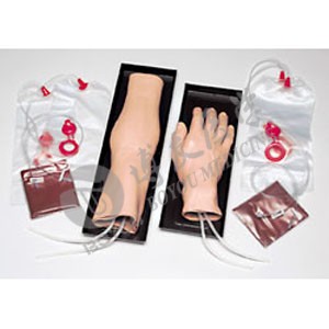 These training aids were designed for practice in giving IVs. They permit detailed exercises in venipuncture so that the technique can be mastered on a realistic model before actually administering to patients. The students can palpate the arm and hand, which are made of supple, resilient plastic with a human feel. The vein is located, the needle introduced, and blood is withdrawn or fluid injected. The models can be used repeatedly. Complete with blood powder and carrying trays.