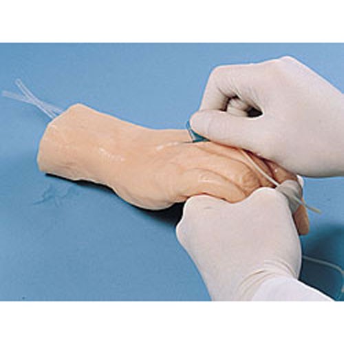 The back of the hand is the most common site for injection training. With this model you can teach the common procedure for IV drips.