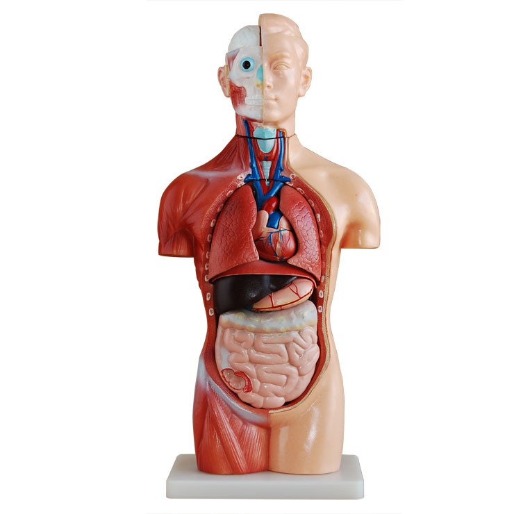 博友BOU-XC207無性軀干模型42CM(18件)這款無性軀干模型分成18件:軀干,頭,腦,氣管,食管和主動脈,橫隔膜,肺(4件),心臟(2件),胃,肝,腎,胰和脾,腸,脊椎神經(jīng)。脊椎露在外面。用PVC制成,安放于塑料座上。