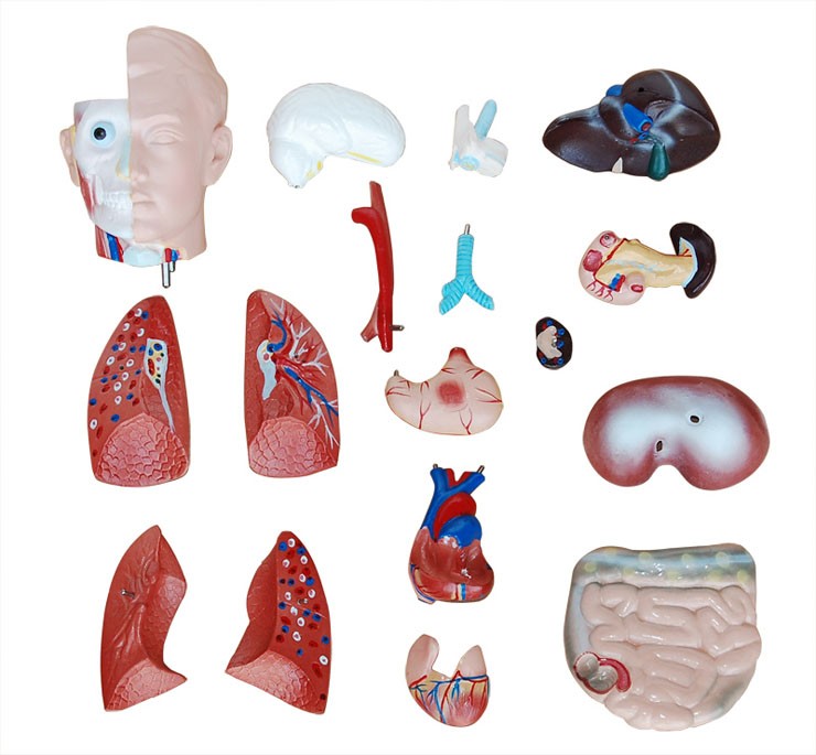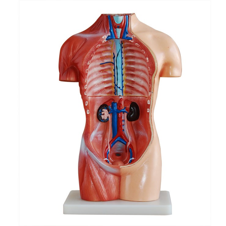 博友BOU-XC207無性軀干模型42CM(18件)這款無性軀干模型分成18件:軀干,頭,腦,氣管,食管和主動脈,橫隔膜,肺(4件),心臟(2件),胃,肝,腎,胰和脾,腸,脊椎神經(jīng)。脊椎露在外面。